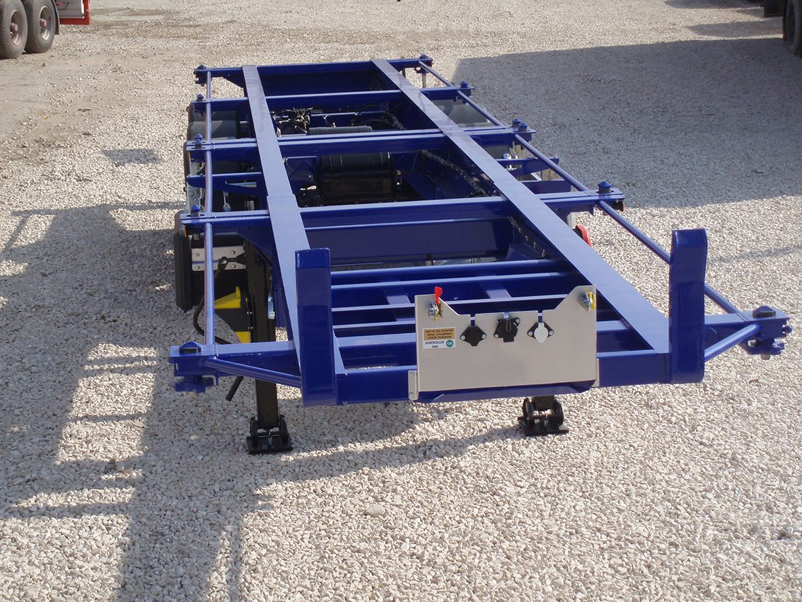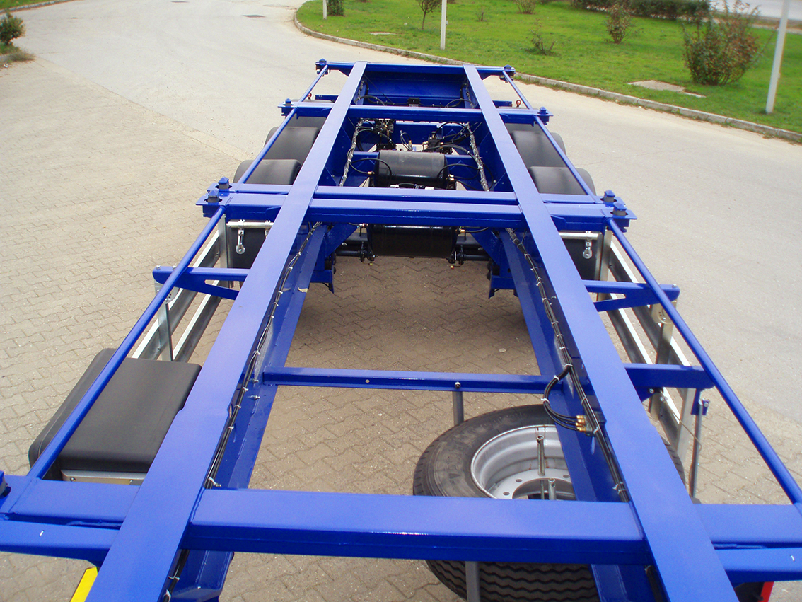 20+20+40+30+20 FT Konteyner Taşıyıcı Yarı Römork. 12 adet sabit konteyner kilidi kullanılır. BPW / SAF diskli dingiller veya kampana frenli dingiller kullanılmaktadır. EBS Fren sistemi WABCO 2S / 2M kullanılır. 6+1 adet 385 / 65R / 22.5 ebatında lastik ve jant kullanılır.