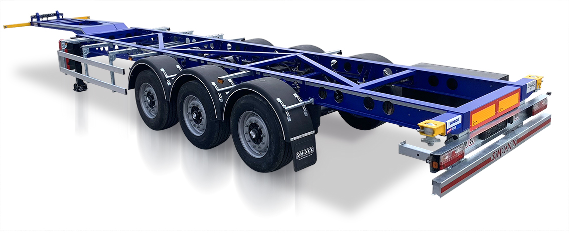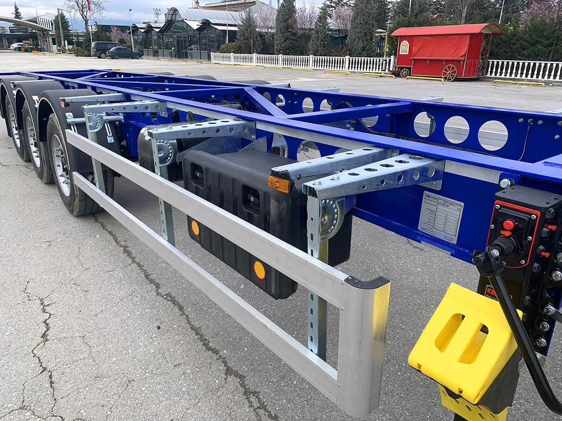 40 + 45 FT Konteyner Taşıyıcı Yarı Römork. 2 adet sabit ve 2 adet hareketli konteyner kilidi kullanılır. BPW / SAF diskli dingiller veya kampana frenli dingiller kullanılmaktadır. EBS Fren sistemi WABCO 2S / 2M kullanılır. 6+1 adet 435 / 50R / 19.5 veya 385 / 55R / 22.5 ebatında lastik ve jant kullanılır.