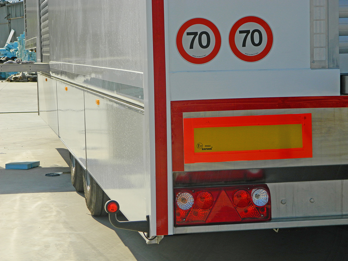 V Tipi Çimento Silobas Yarı Römork. 30 m3 / 45 m3 taşıma kapasiteli üretilmektedir. BPW / SAF diskli dingiller veya kampana frenli dingiller kullanılmaktadır. EBS Fren sistemi WABCO 2S / 2M kullanılır. 6+1 adet 385 / 65R / 22.5 ebatında lastik ve jant kullanılır.