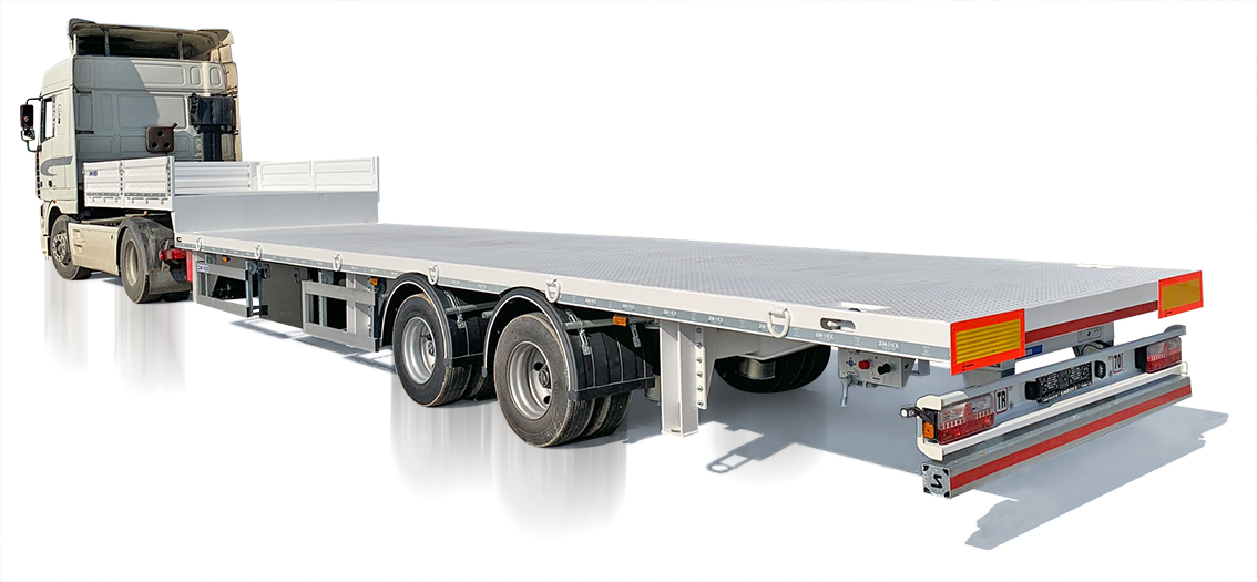 2 dingilli Jumbo Yarı Römork. 7,6 mt ile 13,60 mt boyları arasında ve 1, 2, 3 dingilli olarak üretilebilmektedir. BPW / SAF diskli dingiller veya kampana frenli dingiller kullanılmaktadır. EBS Fren sistemi WABCO 2S / 2M kullanılır. 8+1 adet 285 / 70R / 19.5 ebatında lastik ve jant kullanılır.